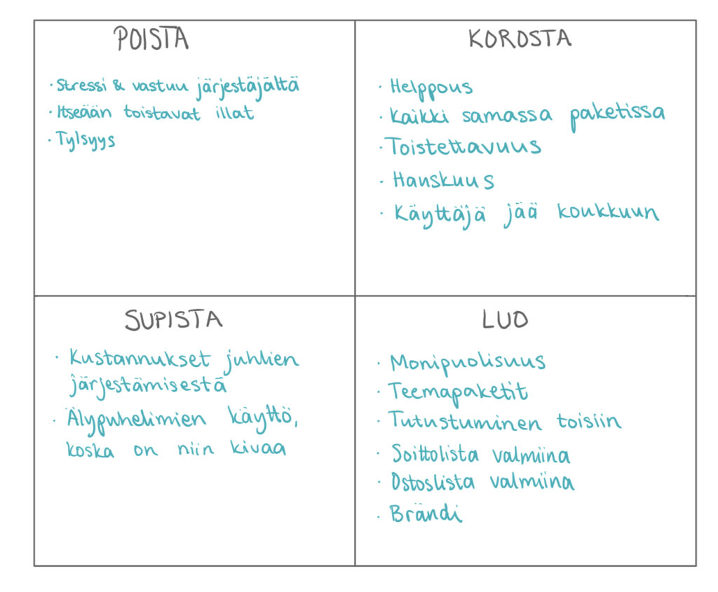 4. Poista: Mitkä toimialalla selviöinä pidettävät tekijät tulisi eliminoida?