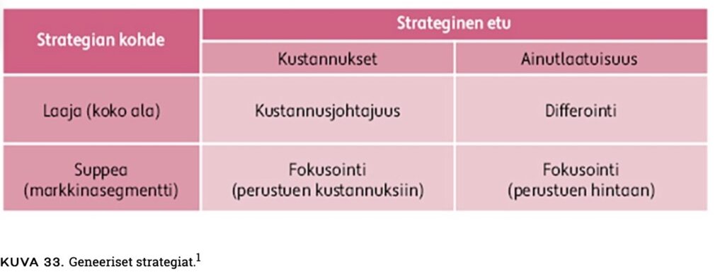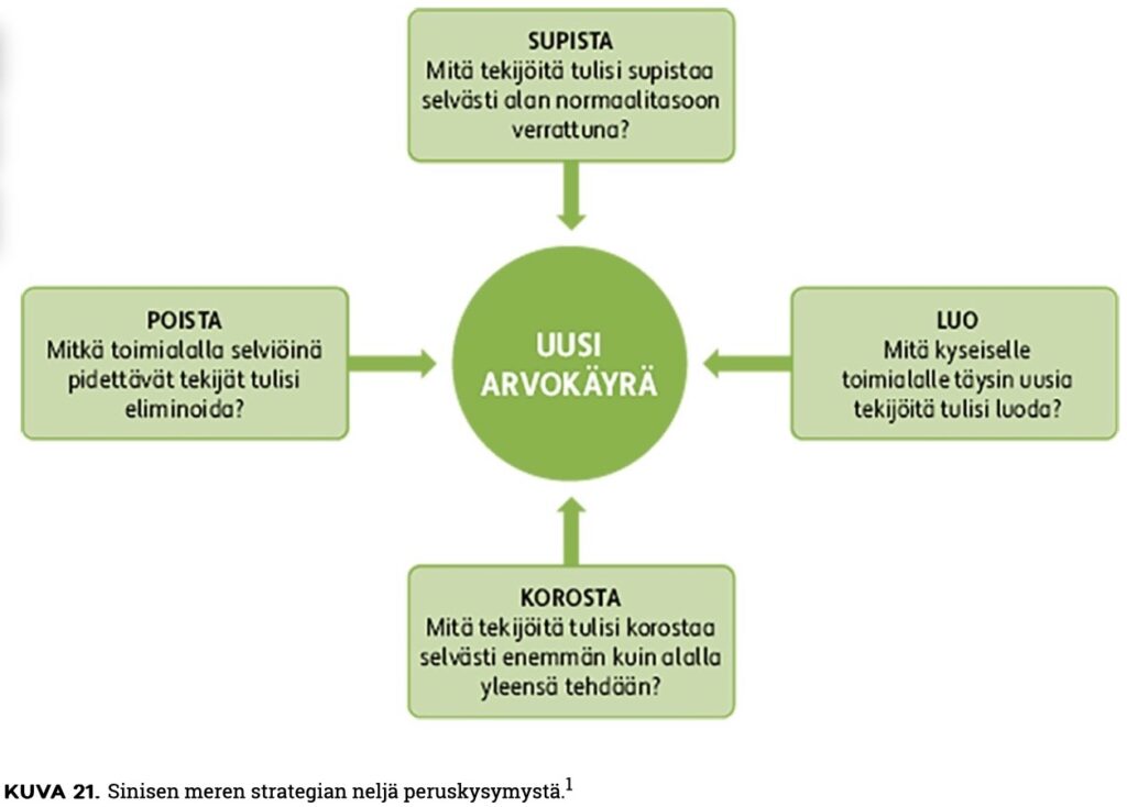 - Uuden luominen ja toiminnan uudistaminen (esim. Sinisen meren strategia).