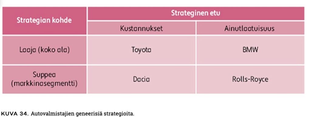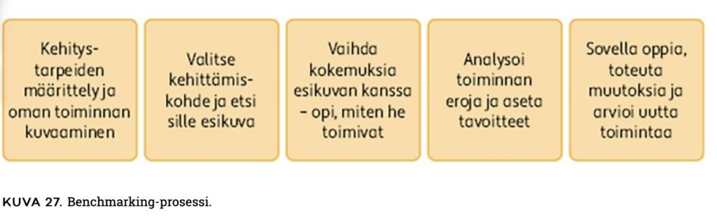 - Resurssien kehittäminen ja sisäisten voimavarojen hyödyntäminen (esim. benchmarking, VRIO-analyysi).